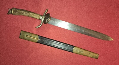 Alter Hirschfänger " Wolf ", vermutlich erste Hälfte XX. Jhd mit Lederscheide.