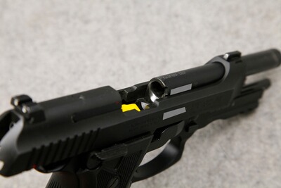 Kaliber 9 mm Luger. Brüniert, Lauflänge 127 mm, Gewicht 964 g. Feste Visierung, Double-Action- / Single-Action Abzug, Sicherungs-/Entspannhebel. Magazinkapazität 17 Patronen. Drei Magazine enthalten. 3-Dot Visierung, nachleuchtend. Picatinny-Schiene am Griffstück. Kunststoffgriffschalen mit Fischhaut.