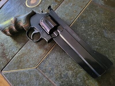 Angeboten wird ein getunter S&W 686 Revolver für Disziplinen wie 1500, PPC usw., aber auch PP 1, NPA und dergleichen, bei denen unterschiedliche Schussdistanzen zu absolvieren sind. Der Revolver hat ein Volltuning vom Spitzenbüchsenmacher Andy Holden aus Paderborn (Holden Custom Guns), es lohnt sich, die Preise von Andy einmal zur Kenntnis zu nehmen.