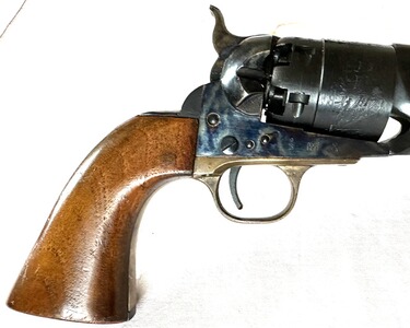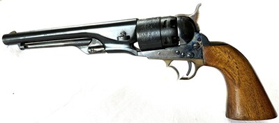 Der Revolver stammt aus einer VL - Sammlungsauflösung. Samuel Colt konstruierte um den leichten Rahmen einen besonders stabilen Revolver für das damals neue Kaliber .44. Mit buntgehärtetem Stahlrahmen und Stahlgriffrücken sowie Messing-Abzugsbügel. Dieses Modell galt als die ultimative Combat-Waffe der Vorderlader-Ära. Der VL - Revolver befindet sich in einen guten bis sehr guten Gesamtzustand. Das Laufinnere ist spiegelblank mit scharfen Zügen und Feldern und ohne sichtbare Beschädigungen. Das Griffstück und Trommel weisen ebenfalls nur geringe Gebrauchs- bzw. Lagerungsspuren auf. Die Brünierung ist zu 99,5% erhalten.