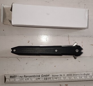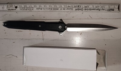 Das angebotene Klappmesser besticht durch sein Dolch-Design und stammt aus einer Sammlungsauflösung.