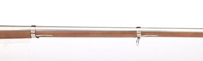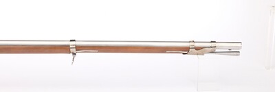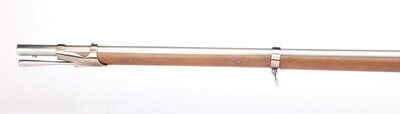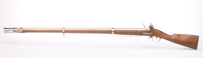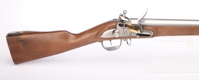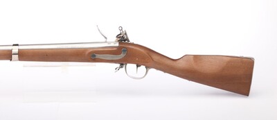 Kaliber .69 (17,5 mm) Steinschloß. Neoklassiker der ausgezeichneten Steinschlossmuskete 1777 modifiziert und aufgelegt im 9. Jahr der französischen Revolution. Sie war die Basiswaffe der französischen Infanterie. Die Bänder werden durch Federn gehalten, alle Beschläge sind aus Stahl, die Pfanne aus Messing. Geölter Nussbaumschaft.