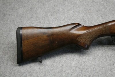 Für den Vorbesitzer wurde der Schaftrücken angepasst, damit er als Rechtshänder bei gebeugtem Kopf, mit dem linken Auge zielen konnte. Für Rechtshänder und Rechtsgucker passt das wunderbar für universelle Zielfernrohre mit nicht zu großem Objektiv. Für große Zielfernrohre kann der Schaftrücken mit kleinem Aufwand wieder höher geschäftet werden.