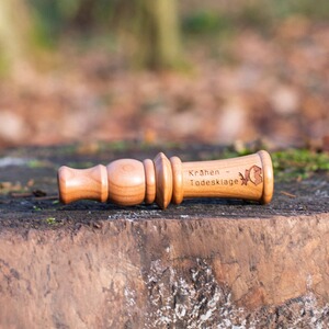 Die Weisskirchen Krähen-Todesklage erzeugt den markdurchdringenden Klageschrei einer Krähe. Funktioniert auch hervorragend bei Elstern. Wenn eine stirbt, kommen die anderen zum Begräbnis. Aus heimischen Kirschholz gefertigt.
