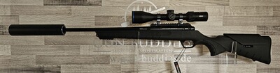 Als Komplettset einsatzfertig montiert mit Zielfernrohr Meopta MeoHunter R5 3-15x50 RD SFP Absehen 4C mit Leuchtpunkt auf 30mm Rusan QR Stahl-Ringmontage, plus Schalldämpfer Jaki Semi-Classic, plus gratis Neopren Gewehrriemen inkl. 2 Riemenbügel.