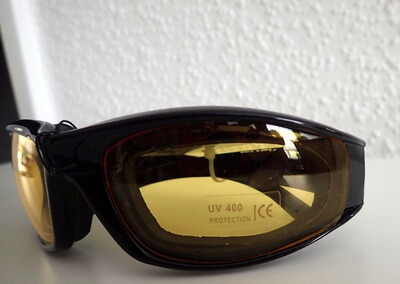 Verkaufe hier eine Schutzbrille für Angeln, Skaten, Radfahren, Joggen, Squash von der Marke Höfftech Germany, Linse getönt gelb.