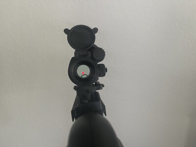 ich verkaufe ein Rotpunkt wie auf den Bildern zu sehen. Es sieht aus wie ein Aimpoint M3 und hat einen Drehknopf mit mehreren Helligkeitsstufen von aus bis dunkel rot. Es funktioniert einwandfrei. Es ist eine neue Batterie eingebaut worden. Das Rotpunkt weist keinerlei Beschriftung und nur wenige Montagespuren auf.