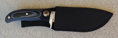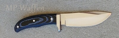 Ein kräftiges und handliches Outdoormesser, mit einem perfekten Größenverhältnis von Klinge und Griff. Die schwarz/grau gemaaserten Griffschalen sind für sicheres und ermüdungsfreies Arbeiten ergonomisch konzipiert. Die durchgehende Klinge aus 440A-Stahl ist 11cm lang. Die Gasamtlänge beträgt 24cm und es ein Gewicht von 215gr.