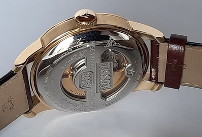 Wie auf den Bildern ersichtlich, befindet sich die Uhr in einem ausgezeichneten Zustand und weist – aufgrund der äußerst geringen Tragedauer von lediglich mehreren Stunden sowie der stets sehr pfleglichen Behandlung – lediglich minimale Gebrauchsspuren wie bspw. vereinzelte Microswirls sowie einen ca. 1mm Kratzer an der nicht sichtbaren Innenseite (!) des Lederarmbandes auf.