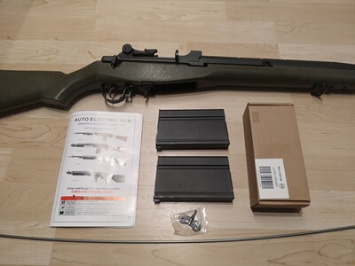 Die M14 ist in technisch einwandfreiem Zustand, sie wurde bisher nur einmal gespielt und ist daher so gut wie neuwertig. Mit dabei ist eine Picatinny-Rail Seitenmontage, ebenfalls von Begadi.