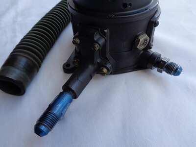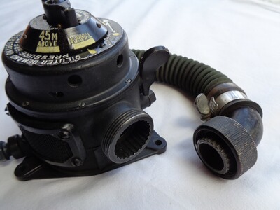 Der Regulator besitzt das original Schlauchanschlußstück das mit der Maske verbunden wird (datiert April 1958).