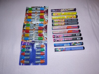 Angeboten wird ein Konvolut an 15 mm Pyros von Zink Feuerwerk und Umarex.
