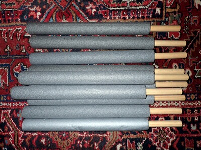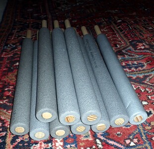 Der Stock hat einen Durchmesser von ca. 2,3 cm und mit der Isolierung ca. 5 cm. Die Schlagstöcker sind alle neu und unbenutzt, habe aber einige Druckstellen (lagerungsbedingt).