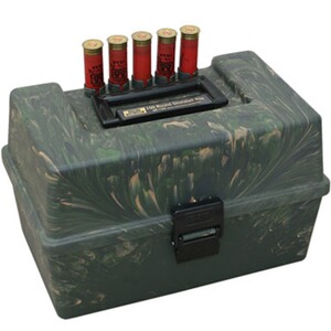 Ausgestattet mit zwei herausnehmbaren Einsätzen bietet die Box Platz für je 50 Schrotpatronen.