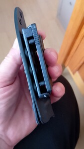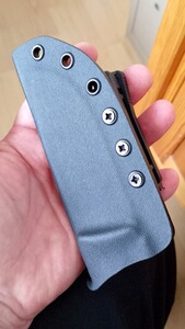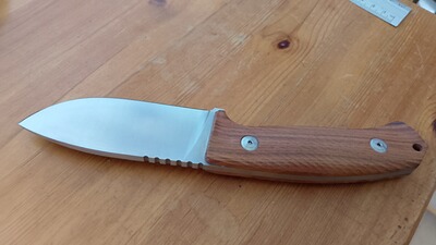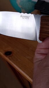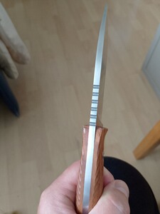 Hallo Jäger und Sammler, Super Messer Lionsteel M 3, ( unbenutzt ) aus Maniago in Italien, dem Gegenstück von Solingen.Stahlsorte ist Niolox,der dem pulvermelallurgischem Stahl sehr Nahe kommt.Rostfrei und sehr zäh, trotzdem gut nachzuschleifen.Der Stahl ist aus deutscher Produktion.Griff ist aus sehr hartem tropischen Santosholz.Für alle Arbeiten am erlegten Stück sowie Holzbearbeitung bestens geeignet.Liegt absolut klasse in der Hand.Mit handgefertigter Kydexscheide die man verstellen kann,sodass auch quertragen kein Problem ist.Hier kann kein Leder oder Cordura verrotten,ist Nässe-und schlagbeständig.Original Lederscheide ist ebenfalls vorhanden.Klingenlänge 11 cm,Klingenhöhe 3,8 cm und Klingenrücken 0,5 cm, Gebaut wie ein Panzer, daher auch für Bushcrafter bestens geeignet.Neupreis ca 190,- €.Selbstabholer oder Versand möglich.
