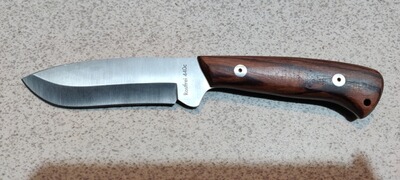 Fahrtenmesser (440c Stahl) mit brauner Leder Scheide, mit Gürtelschlaufe .Das Messer ist in einem guten gebrauchten Zustand und wird mit einer Lederscheide geliefert. Heft: 9cm.