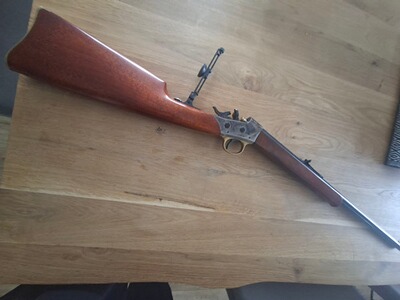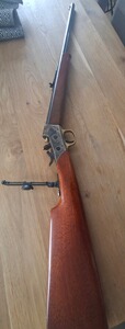 Verkaufe aus gesundheitliche und Altersgründen meinen mehr schönen leichten 2,2Kg Einzellader der Firma Überti die Schussleistung ist sehr gering evtl. 200Schuß von Mir selbst geschossen der Vorbesitzer hatte es nur als Sammlerstück gehabt, was man auch an der Patina sieht . Der Lauf ist Spiegelblank . Wie gesagt ich habe noch ein Klappvisier angebaut aber ich habe kein Loch gebohrt es ist mit der Schaftschraube befestigt und kann jeder zeit abgebaut werden (die Original Schaftschraube lege ich bei ), damit es Cooler aussieht. Es erfüllt aber voll die Funktion . Das Gewehr ist voll Funktionsfähig und schießt sehr präzise und genau mit und ohne Klappvisier.