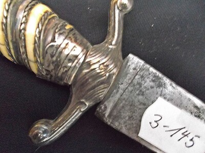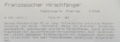 3-145 HIRSCHFÄNGER mit Elfenbein-Silbergefäß, punziert Paris 1768