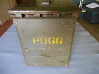 Zum Verkauf kommt eine Metall Patronenkiste mit den Maßen, ca.30X15X19 cm, Versiegelter Deckel mit typischer Schwerlastverriegelung und Schwerlastgriff zum Transport, luftdicht verschlossen. Leichte Korrosion am Deckel siehe Bilder. Ein seltenes original. Dies ist eine Privat Auktion, daher Garantie, Rückgabe oder Umtausch ausgeschlossen.