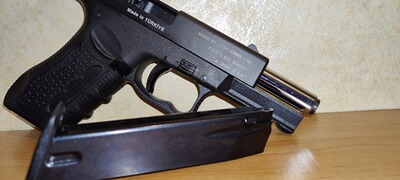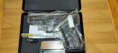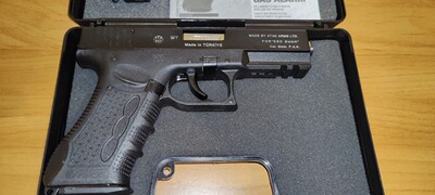 Verkaufe eine Zoraki 917 mit PTB 947. Die Waffe ist eine Kopie der Glock 17. Sie kommt mit Koffer, Reinigungsbürste, einem Magazin, Abschussbecher, Handbuch und Mündungsschoner.
