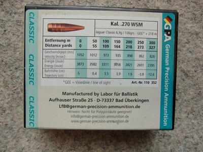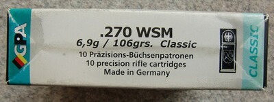 MUNITION: 10 PATRONEN KAL. .270WSM, AB LAGER LIEFERBAR!!!