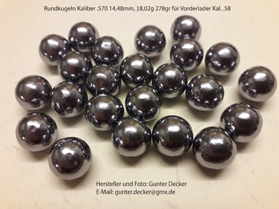 Für die Vorderlader Gewehre Pistolen Kaliber .58 biete ich als Alternative zu den Minie Geschossen auch Rundkugeln im