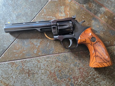 Angeboten wird ein ausgesprochen schöner und gut ausbalancierter Revolver von Dan Wesson, welcher eine wundervolle, polierte Oberfläche besitzt und auch (z.B. bei der Trommelverriegelung) eigene Akzente setzt. Ein wirklich schönes und wenig geschossenes Stück in einem hervorragenden Zustand. Schöne, schwarze Brünierung auf einer tollen Oberfläche besten Stahles, heute teuer zu bezahlen. Es sind beide abgebildeten Griffe im Preis inkludiert. Der Revolver kann nach Absprache in Leipzig begutachtet werden, gern ist unter Wegfall der Versandkosten auch eine Abholung möglich. Kunden aus dem Ausland sind natürlich willkommen, wenn Sie den Import/Export über einen deutschen Händler abwickeln (zum Beispiel Waffen Bock in Pirmasens). Bitte beachten Sie auch meine hochwertigen Angebote bei Auctronia (https://www.auctronia.de/suche?searchcategory=&q=leipzigerzeugwart) sowie immer wieder auch bei www.egun.de (in der Detailsuche „nur Artikel von Benutzer“ den Suchbegriff „leipzigerzeugwart“ eingeben).