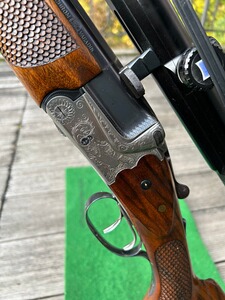 Stahlsystem mit flach gestochener Jagdgravur. Kerstenverschluss mit doppelter Laufhakenverriegelung (stabiler geht nicht) im Bestzustand.