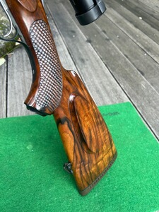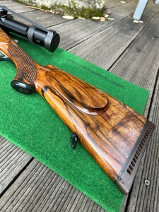Schön gemasertes Luxusschaftholz (die Bilder geben das nur ansatzweise wider) mit sauber geschnittener Schuppenfischhaut, keine Kratzer oder Dellen