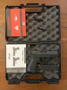 Die Walther P22 Schreckschusspistole wird zusammen mit einem Abschussbecher und einem Koffer angeboten. Das Set beinhaltet die Waffe mit Magazin, einen Abschussbecher und ein Reinigungswerkzeug. Ursprünglich bei Demmer erworben, wurde die Pistole überwiegend im Schrank gelagert.