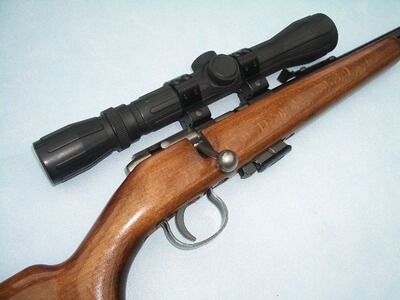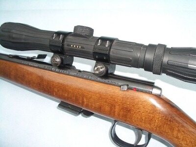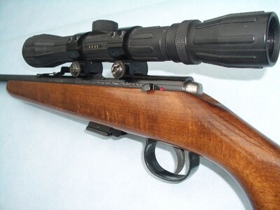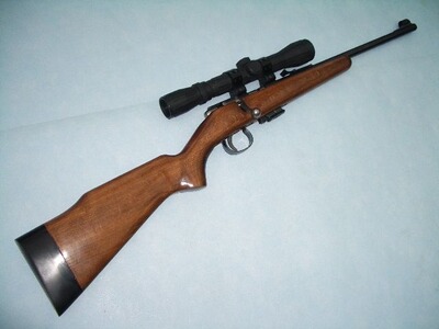im Kal. .22lr, 5-schüssiges Magazin, Direktabzug, Ulmer Beschuß 1986 mit ZF Hubertus 4x32. Schrankwaffe in einem Top Zustand.