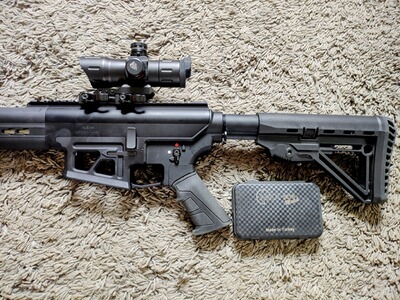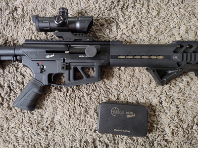 Halbautomatische Flinte mit Pistonsystem und zweiteiliger Gehäusekonstruktion im bekannten AR15/M16- Stil.