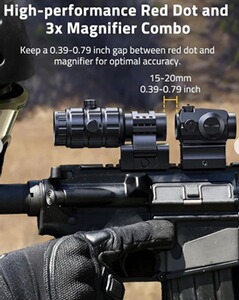 - [Verbesserte Genauigkeitskombination]: Das CVLIFE Rotpunkt- und Vergrößerungsglas-Visier ist darauf ausgelegt, Ihre effektive Reichweite zu erweitern. Dieses optische Vergrößerungsglas verdreifacht die Vergrößerung des Standard-Rotpunktvisiers und sorgt für präzises Zielen auf größere Entfernungen, während ein komfortabler Augenabstand von 2,36 Zoll ein weites Sichtfeld erhält.