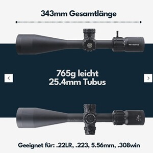 Das Vector Optics Paragon der 2. Generation ist ideal für den Sportlichen Einsatz von 25 m bis 300 m und darüber. Es verfügt LaREE Linsen mit VePRO Mehrschichtvergütung welche enie Lichttransmission von über 92% ermöglichen und somit auch bei schlechten Lichtverhältnissen Ideal sind.