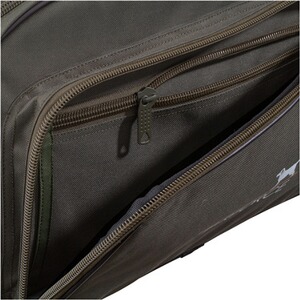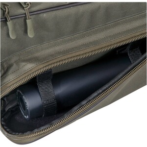 Ein besonderes Highlight des Futterals ist der bis zur Hälfte verstärkte Boden, der ein Aufscheuern durch den Lauf verhindert. Diese Verstärkung kann bei Bedarf entnommen werden, was ein Falten des Futterals auf die Hälfte ermöglicht. Das Außenmaterial aus 100% Polyester ist äußerst wasserabweisend und schützt die Ausrüstung auch bei widrigen Wetterbedingungen.