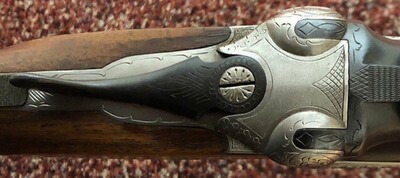 Die Bockbüchseflinte stammt aus einem Waffenkonvolut wegen Aufgabe der Jagd. Die Bockbüchsflinte befindet sich in einem sehr guten und gepflegten Gesamtzustand und zeigt dem Alter entsprechend geringe bzw. normalen Gebrauchs- und Lagerspuren gekennzeichnet. Die Brünierung ist zu 98% erhalten. Der Systemkasten ist mit Arabbesken graviert. Der Verschluss schließt saugend (Kein Spiel zwischen Basküle und Laufbündel) mittels eines Doppel-Greener-Verschlußes und die Abzugspannung sowie der Stecher zeigen eine hervorragende Funktion. Das Laufbündel ist innen spiegelblank und die Züge und Felder sind klar und scharf. Auf dem Laufbündel sind Montagebasen einer Suhler-Einhak-Montage montiert. Details können den beigefügten Bildern entnommen werden.