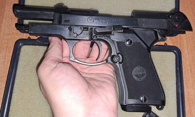 Die Valtro ist im Kaliber 9 mm P.A.K. und im alten PTB 518 von 1993, (Jahresstempel 93). Herstellung ist in Italien gewesen, Made in Italy ist auch gestempelt. Diese Valtro ist ein Klon der umfangreichen Familie der Beretta-Baureihe 84 / 85, die in verschiedenen Griffstück- und Schlittenformen seit vielen Jahren in verschiedenen Kalibern gebaut wurde.