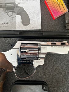 Die Zoraki R2 3“ ist ein Schreckschussrevolver im Kaliber 9mm R.K. und zeichnet sich durch ein verchromtes Finish sowie Echtholz Griffschalen aus. Die Waffe wurde als Vitrinenstück genutzt und zeigt keine Gebrauchsspuren. Die Zuverlässigkeit und Robustheit der Zoraki SRS-Serie sind weithin anerkannt. Im Lieferumfang sind 10 Schuss Platzpatronen enthalten.