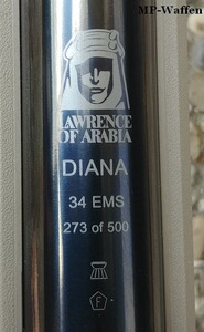 Limitierte Sonderedition 'Lawrence of Arabia' des DIANA 34 EMS mit robustem sandfarbenen Kunststoffschaft im Set inkl. 'Lawrence of Arabia' Futteral und 'Lawrence of Arabia' Diabolos!