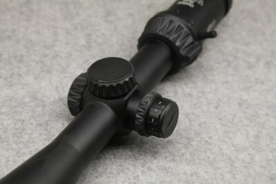 Höhen- und Seitenverstellung mit 0,5 MOA Klicks. Parallaxe-Einstellung am linken Seitenturm. Mittelrohrdurchmesser 30 mm (ohne Schiene), Sehfeld 13,3 m - 2,3 m auf 100 m, Länge 359 mm, Gewicht 772 g.