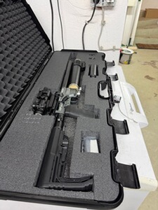 Waffenkoffer abschließbar mit Zahlenschloss. Bedienungsanleitung und Exportventil von Go Gun mit dabei.