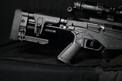 Das Ruger Precision Rifle im Kaliber .308 Winchester mit einem 24-Zoll-Lauf ist eine Repetierbüchse, die für ihre hervorragende Schussleistung bekannt ist. Das Design der Waffe orientiert sich am AR-Design, was sie kompatibel für diverse Anbau- oder Austauschteile macht, darunter Pistolengriffe, Schäfte und Handschutze. Auch AR-10 Magazine sind verwendbar. Die Waffe hat noch keinen Schießstand erlebt und wurde nur vom Beschussamt geprüft. Der derzeitige Neupreis liegt bei etwa 2400,00 €.