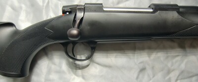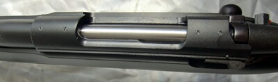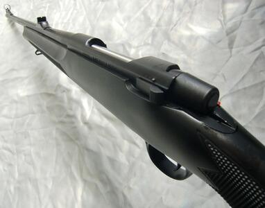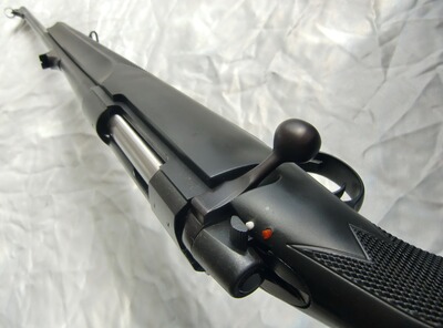 Sicherung: Seitliche 2-Stellungs-Schiebesicherung. Die Sicherung wirkt auf den Abzug und arbeitet in zwei Stellungen. In der vorderen Position des Schiebers ist die Büchse feuerbereit, dies wird durch einen roten Punkt signalisiert. In der hinteren Position wird ein weißer Punkt angezeigt. Nun befindet sich die Büchse im gesicherten Zustand.