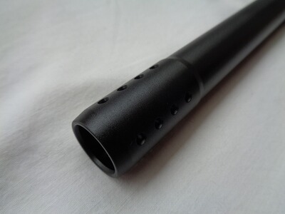Der Lauf ist natürlich im Kal. .68, besitzt eine Lauflänge von 8“ (20cm) und verfügt über Bohrungen im Mündungsbereich.