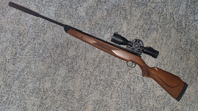 Zum Verkauf kommt hier ein Diana Mod. 350 Magnum Classic T06 in 4,5mm, Federluftdruckgewehr in F-Ausführung mit Original Visierung und einer UIT - Schiene. Das Luftgewehr ist gebraucht aber in einem guten Zustand ( siehe Bilder ). Auf der Unterseite des Laufes sind Gebrauchsspuren sichtbar, die bei Benutzung eines Laufgewichts nicht mehr sichtbar sind. Geliefert wird mit eingebauter Standardfeder und Kolben. Zum Versand wird der Schaft vom System abgeschraubt. Zusammenbau Kinderleicht, nur 3 Schrauben.