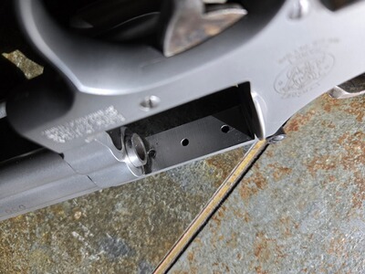 Angeboten wird ein Revolver Smith&Wesson S&W 686-4 Target Champion in einem wunderbaren Zustand. Auch bei sorgfältigster Examination sind keine gravierenden Gebrauchsspuren erkennbar, keine fühlbare Magnumrille, die Waffe wurde wenig geschossen. Der Bereich der Trommel, wo es unvermeidliche Spuren vom Trommelstopp gibt, ist bei der sonst seidig-sandgestrahlten Oberfläche poliert, das sieht toll aus, verbessert den Trommellauf und wirkt insgesamt hochwertiger.