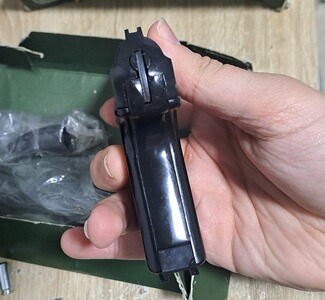 Ich habe sie zum Test geschossen, sie schießt, da die heutige Muni aber schwächer ist, treten evtl. Klemmer auf, sie wurde bisschen geölt, muss aber mal komplett zerlegt und gereinigt werden. Dabei ist noch ein Abschussbecher, vermutlich nicht der Originale, aber passt.