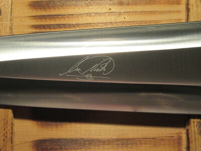 großes feststehendes Messer aus rostfreiem Stahl mit Signierung.