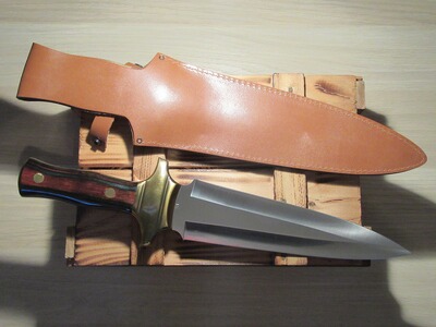 Das Messer wird inklusive hochwertiger und sehr robuster brauner Echtlederscheide