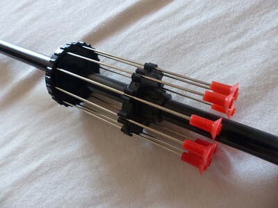 An dem Blasrohr befindet sich ein Pfeilhalter mit 10 Halterungen für die Pfeile.